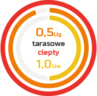 To wariant „cieplejszy”, rekomendowany do obiektów o podwyższonej izolacyjności termicznej. Osiąga doskonałe parametry w zakresie termoizolacyjności: Uw na poziomie od 0,84 W/m2K.